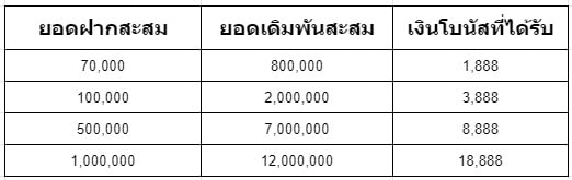 ยอดโบนัสคำนวนจากเงินฝากและยอดเทิร์น โดยมีรายละเอียดดังนี้