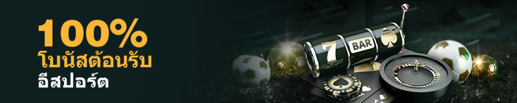 อีสปอร์ต ฝากขั้นต่ำ 100 บาท มีเกมที่ร่วมรายการจากค่าย IME , TF โบนัสขั้นต่ำ 100 บาท และโบนัสสูงสุด 3,000 บาท ทำยอดเทิร์นโอเวอร์ 13 เท่า เช่น โอนเงินเข้า 100 บาท รับโบนัส 100 บาท (100% x 100 บาท) ต้องทำยอดเทิร์นโอเวอร์ (100 + 100) x 13 = 2,600 บาท